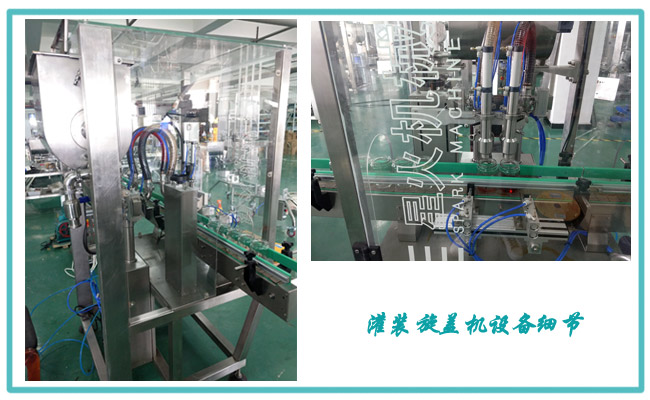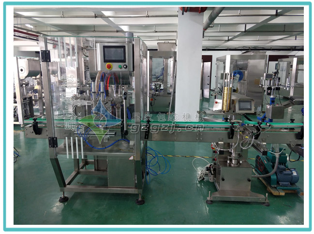 該灌裝旋蓋機可單機使用,也可配玻璃瓶真空旋蓋機、自動圓瓶貼標(biāo)機、瓶蓋噴碼機使用。