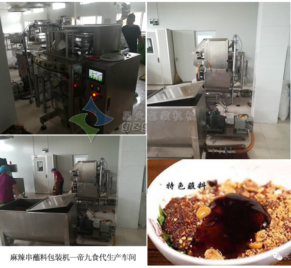 帝九食代餐飲管理服務有限公司位于享有"天下第一糧倉"的吉林省榆樹市,公司擁有泥鍋麻辣串、福成泥鍋麻辣串、泥鍋歡樂串三大拳頭產品;目前已發展成麻辣串行業品牌,在全國有幾十家連鎖店和直營店;近日從星火采購的調味醬料包裝機解決了底料、蘸料、湯料等的包裝問題,在麻辣串蘸料自動包裝機的幫助下,帝九食代餐飲也走上了自動化包裝的道路
